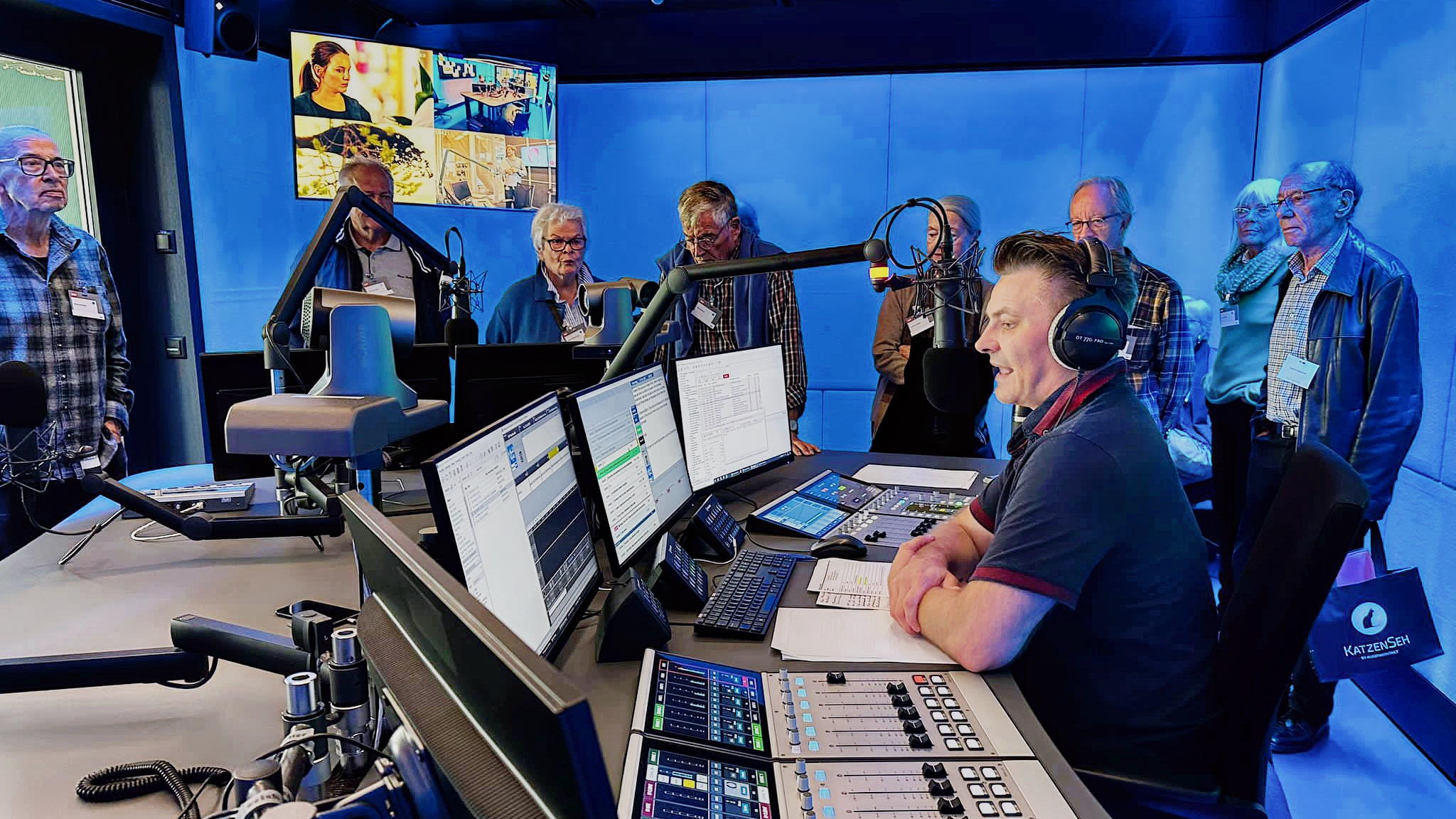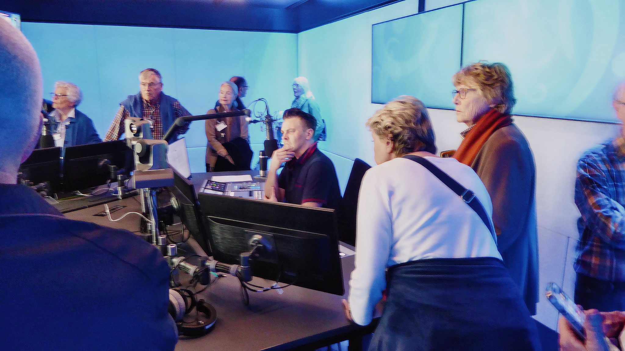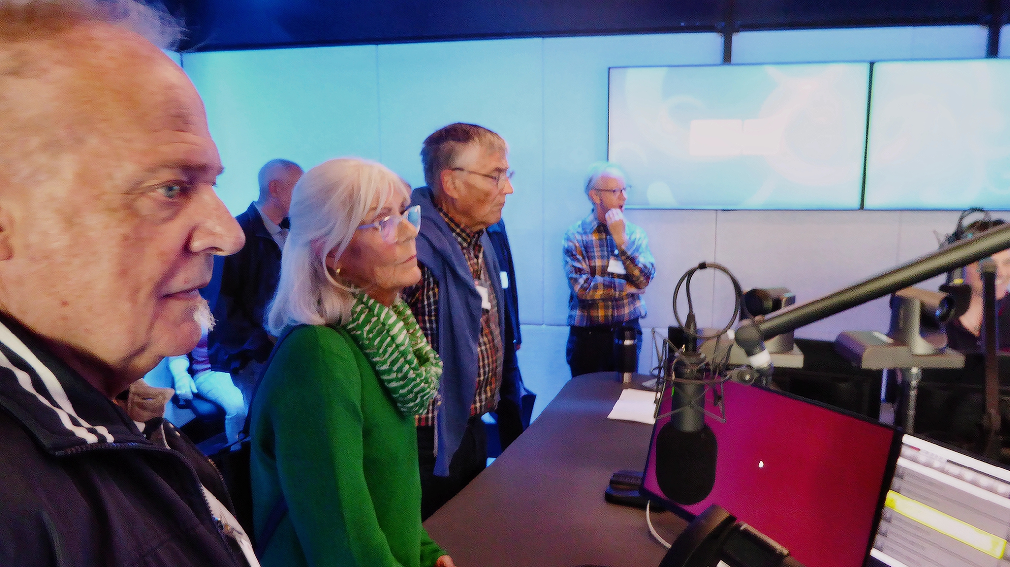 Der Kontakt während dem laufenden Betrieb mit den ModeratorInnen zeigte für uns eindrücklich, wie heute Radio gemacht wird. Die neue Infrastruktur wird gelobt und sei einfacher zu bedienen gegenüber der früheren Sebstfahrtechnik sagen ModeratorInnen. Interessant war zu sehen wie der Kontakt mit HörerInnen im laufenden Betrieb und die Wahl eines gewünschten Musikstückes erfolgt. Ein weiteres Beispiel war die sofortige Umstellung im Programm als Anlass zum Rücktritt von Bundesrätin Sommaruga. Die Einschaltung der News aus der Nachrichtenredaktion, die im News- und Sportzentrum untergebracht ist, zeigte exemplarisch wie die neuen Prozesse im Betrieb funktionieren und aktueller nicht sein könnten. Das Outfit der Studios wird je mit einer passenden Farbe pro Radiokanal und einem auf einer Monitorwand sichtbarem "Brand" gekennzeichnet. Diese Darstellung kann durch den Moderator, je nach Sendetyp, umgestellt und angepasst werden.