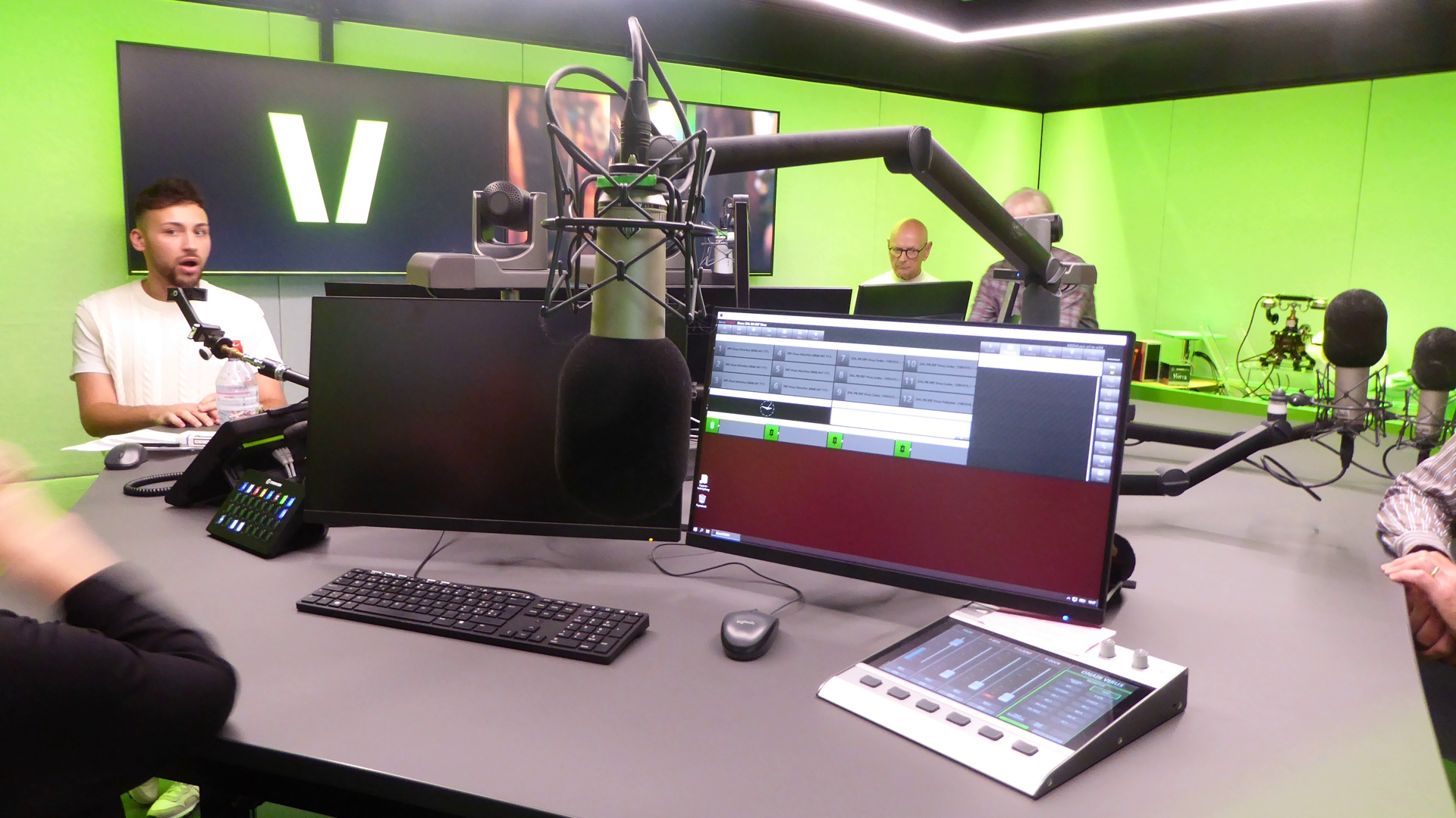 Ein Jahr nach dem ersten Besuch des VP-SRF in der Radio Hall (damals war es noch vor der offiziellen Eröffnung) stellen wir fest, dass mittlerweilen sehr reger Betrieb herrscht, denn inzwischen sind alle Radiosparten mit ihren Leuten hier an der Arbeit. Patrick Bauer, Systementwickler bei SRF, und Patrick Bortolan, Sales Manager Sponsoring bei Radio SRF, führen uns in zwei Gruppen durch die Radio Hall.