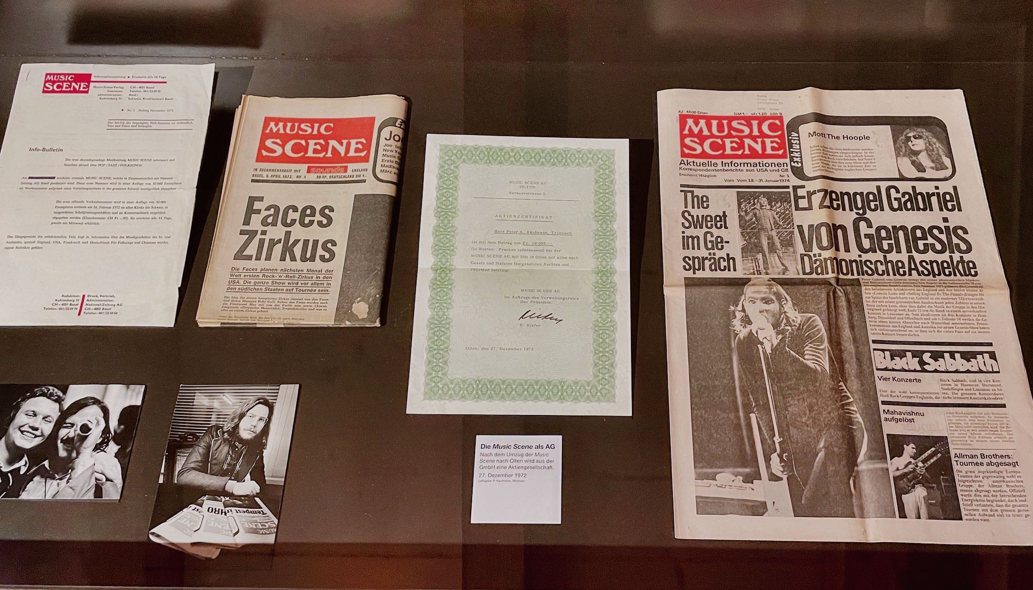 Internationale Grössen wie Miles Davis, Alice Cooper, Tina Turner oder Deep Purple hatte der Oltner Fotograf Franz Gloor vor der Linse. Aber auch Schweizer Bands wie Rumpelstilz, TEA oder Magog lichtete er für das Magazin «Music Scene» ab. Ob am Jazzfestival in Montreux, an den Grosskonzerten in Zofingen und Winterthur oder im Theater am Zielemp in Olten, Gloor war als Konzertfotograf mit dabei. Seine Bilder ermöglichen ein Eintauchen in die Musikwelt und Konzertszene der 1970er Jahre. Franz Gloor dokumentierte ab 1970 für die von Peter Kaufmann herausgegebene Zeitung «Music Scene» Rock-, Pop- und Jazzkonzerte in der ganzen Schweiz.