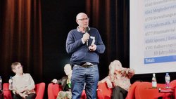 Roger de Weck, unter anderem ehemaliger Generaldirektor der SRG, stellte sein Gast-Referat nach der ordentlichen Versammlung unter der Titel «Der Kampf geht weiter». Er kritisierte Bundesrat Albert Rösti, der nach dem deutlichen Volks-Nein zur Halbierung-Initiative davon gesprochen hat, dass bei der kommenden Konzessionserneuerung für die SRG darauf geachtet werden müsse, dass die SRG ausgewogener werde. Mit 62 gegen 38 Prozent habe das Stimmvolk die SRG in ihrer heutigen Form klar unterstützt – der Service public funktioniere. Wenn man Rösti und seine SVP höre, dann sei einem klar, dass der Kampf für eine SRG, wie wir sie kennen, weiter gehe. Die Aussagen von Roger de Weck haben die Anwesenden bekräftigt, sich weiterhin für eine starke SRG einzusetzen.
